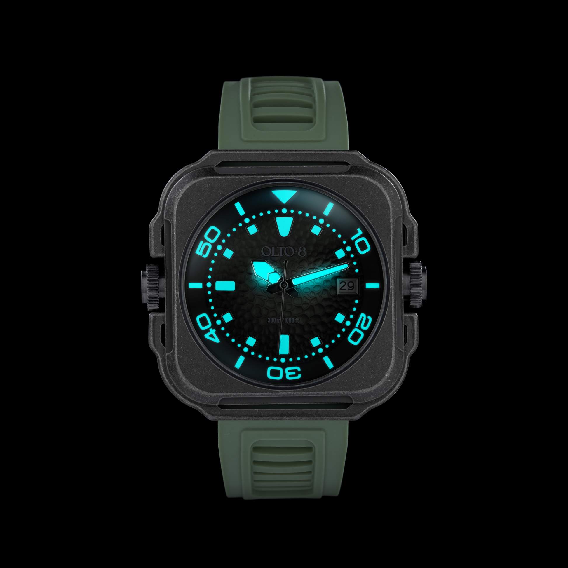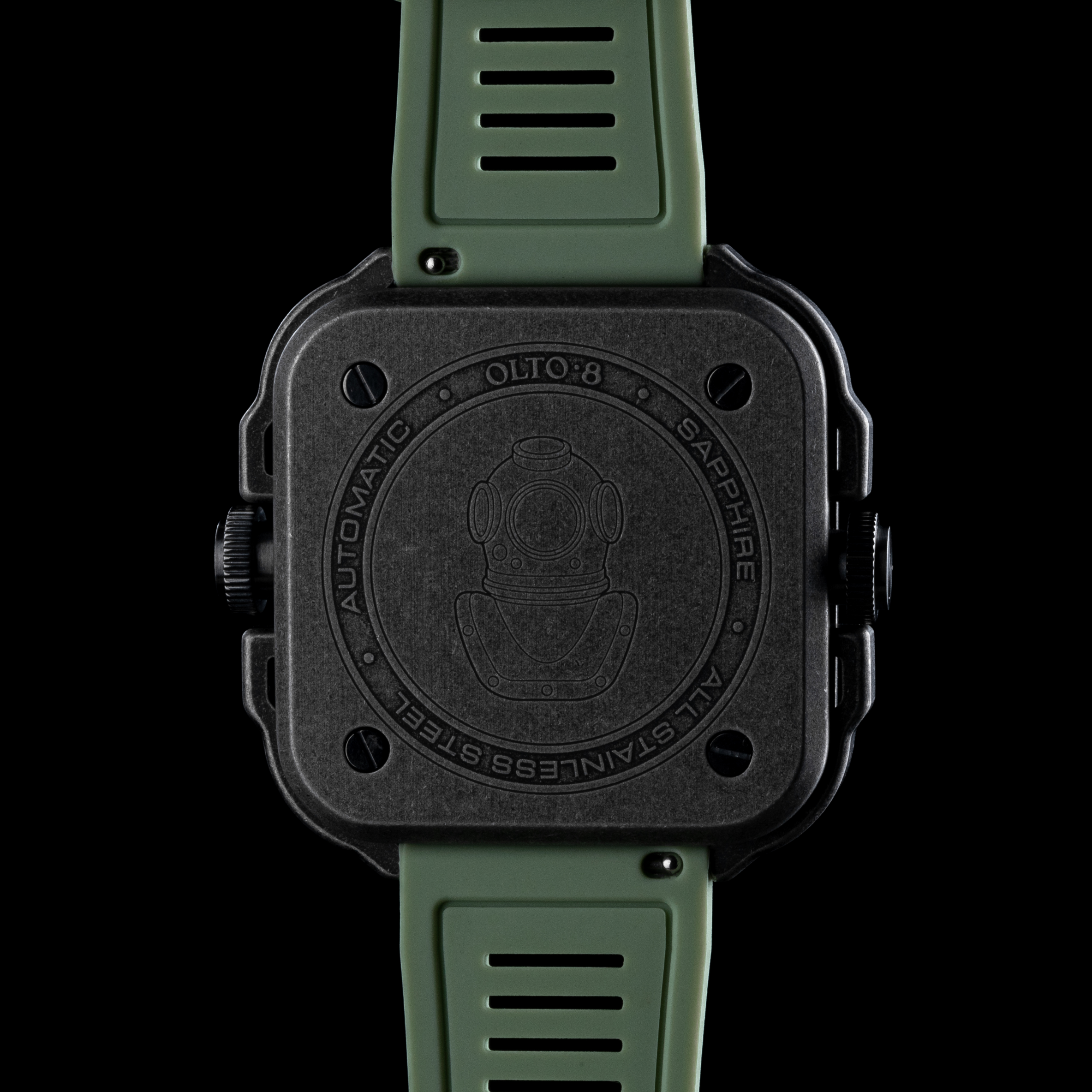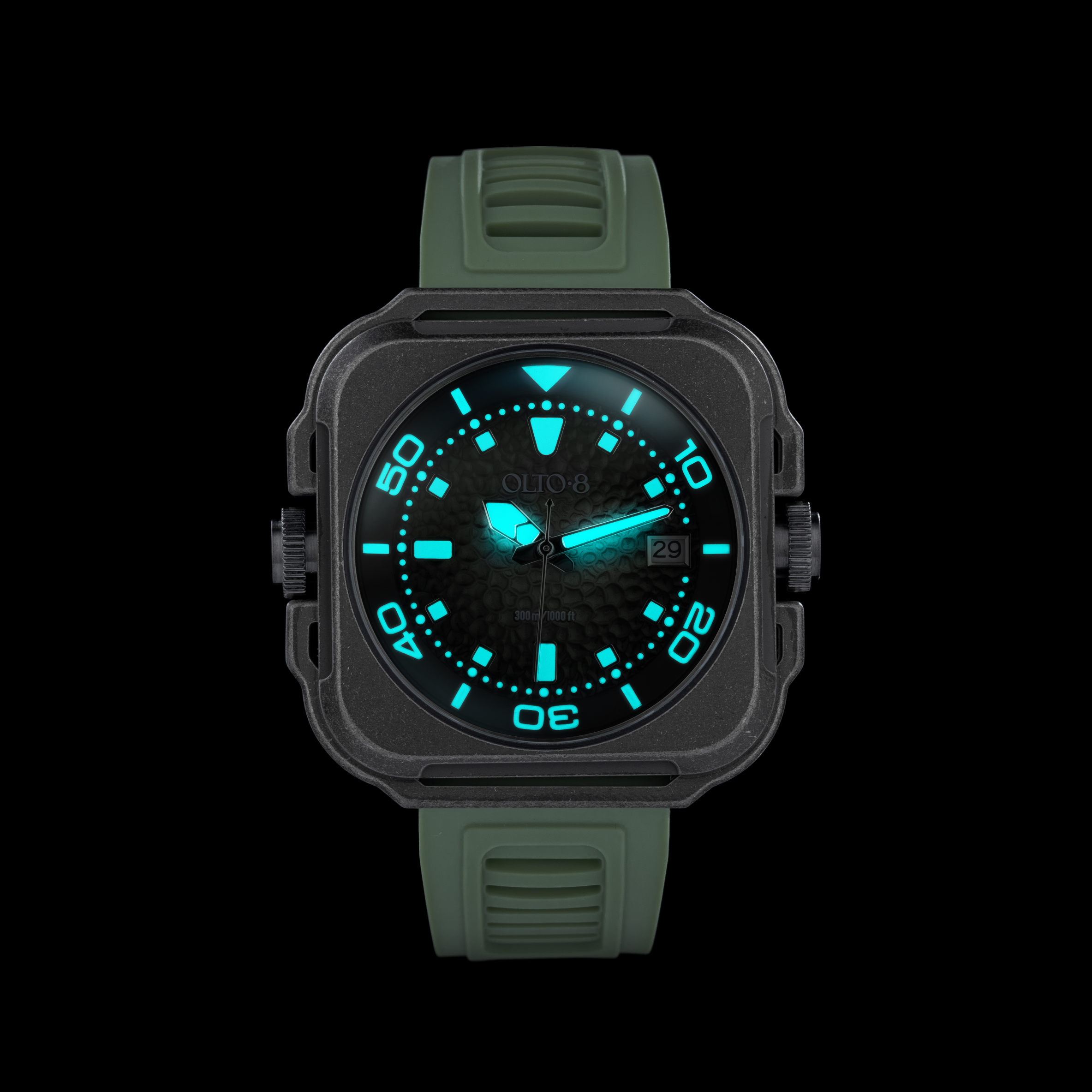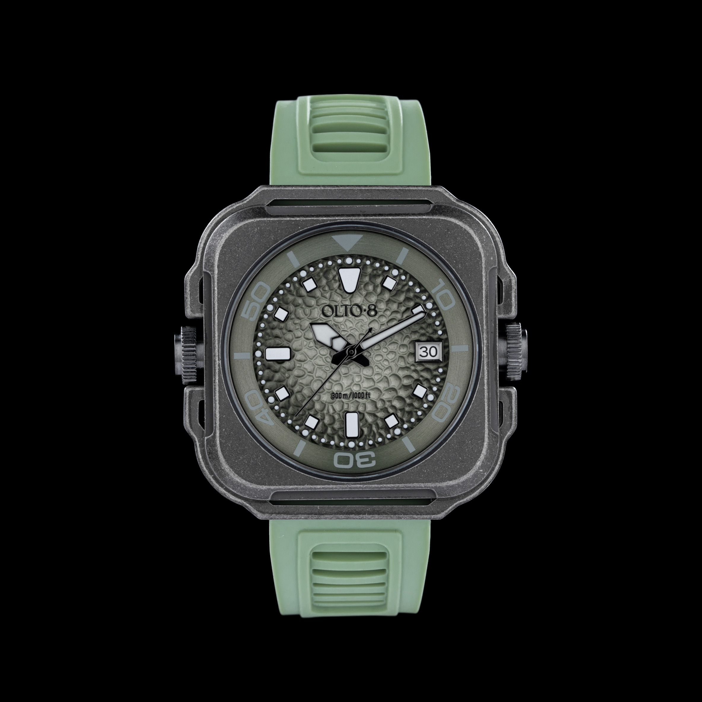 لك ساعة OLTO-8 Coral Steward للغوص أوتوماتيكية باللون الأخضر القديم تأتي الساعة مع ضمان الحماية لمدة خمس سنوات :