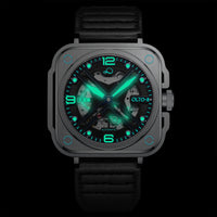 لك ساعة OLTO-8 IRON-X مربعة هيكلية أوتوماتيكية فضية تأتي الساعة مع ضمان الحماية لمدة خمس سنوات :