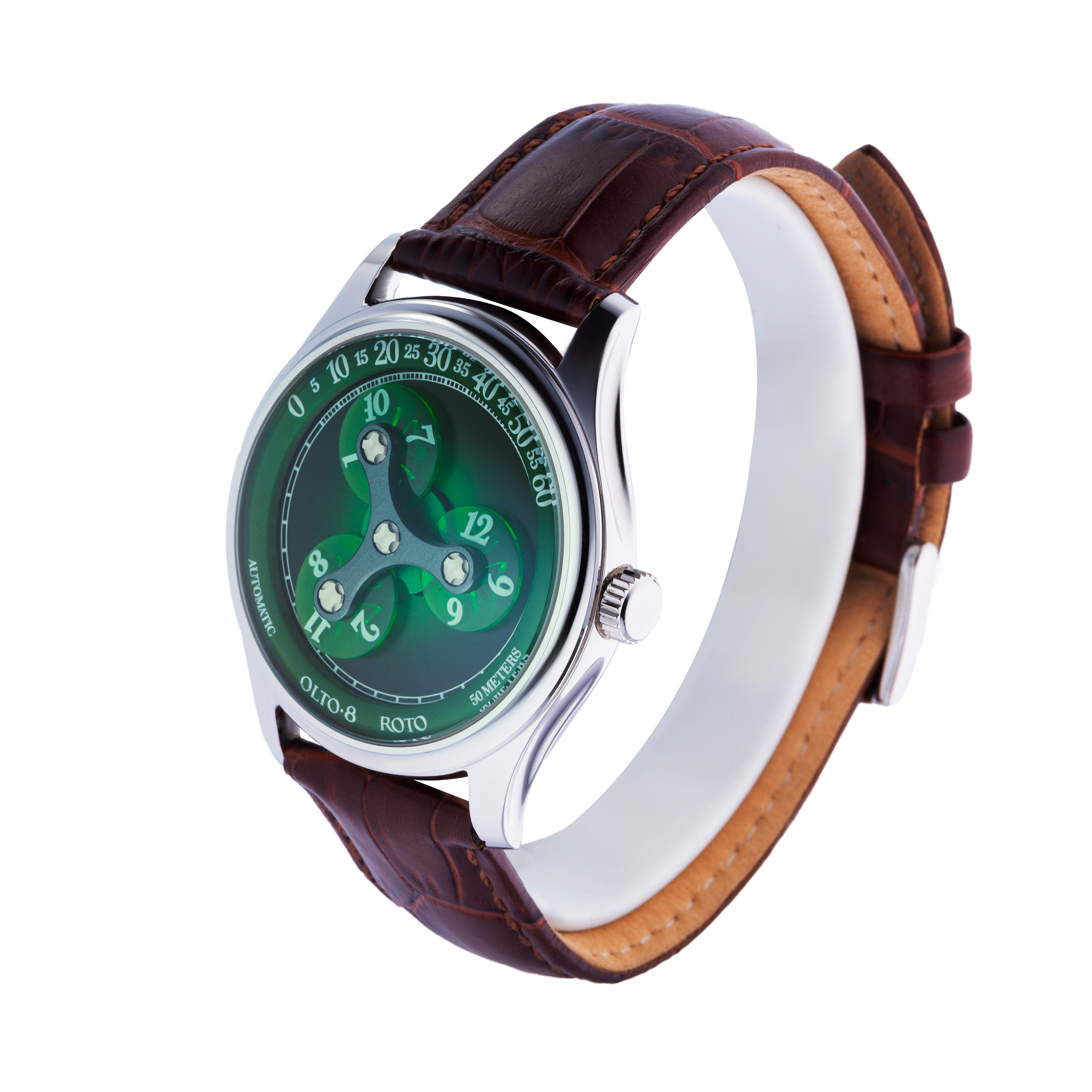 لك ساعة OLTO-8 ROTO Wandering Hour أوتوماتيكية باللون الأخضر اليشم تأتي الساعة مع ضمان الحماية لمدة خمس سنوات :