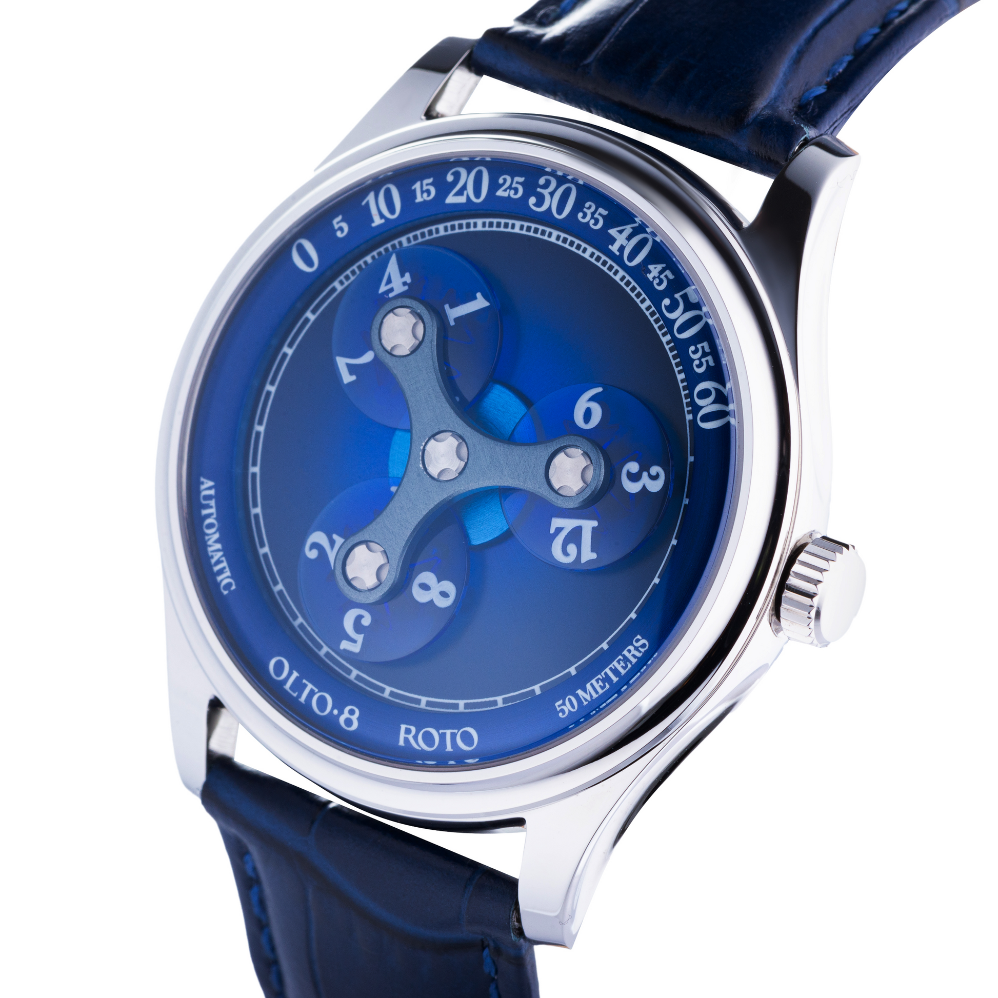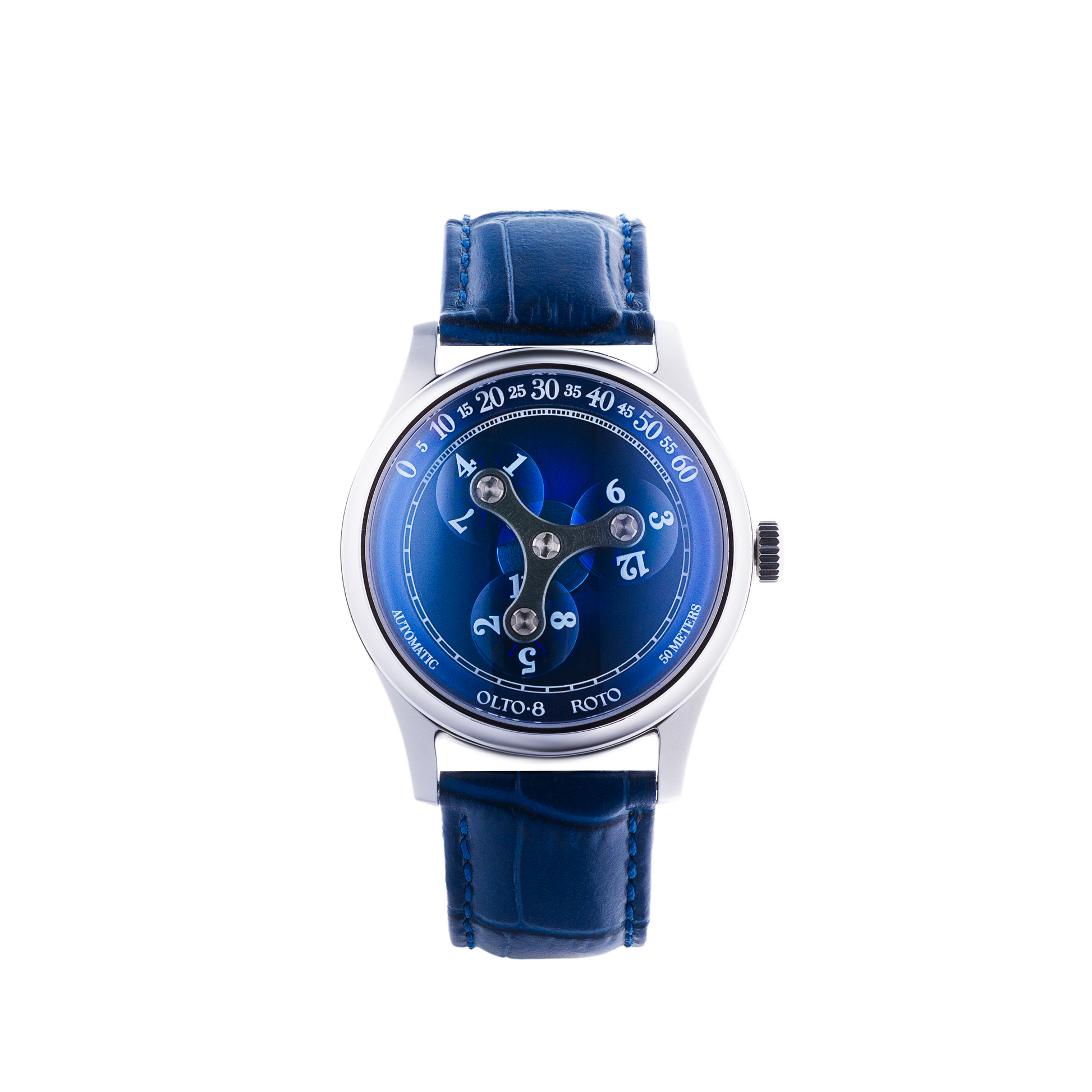 لك ساعة OLTO-8 ROTO Wandering Hour أوتوماتيكية باللون الأزرق المحيطي تأتي الساعة مع ضمان الحماية لمدة خمس سنوات :