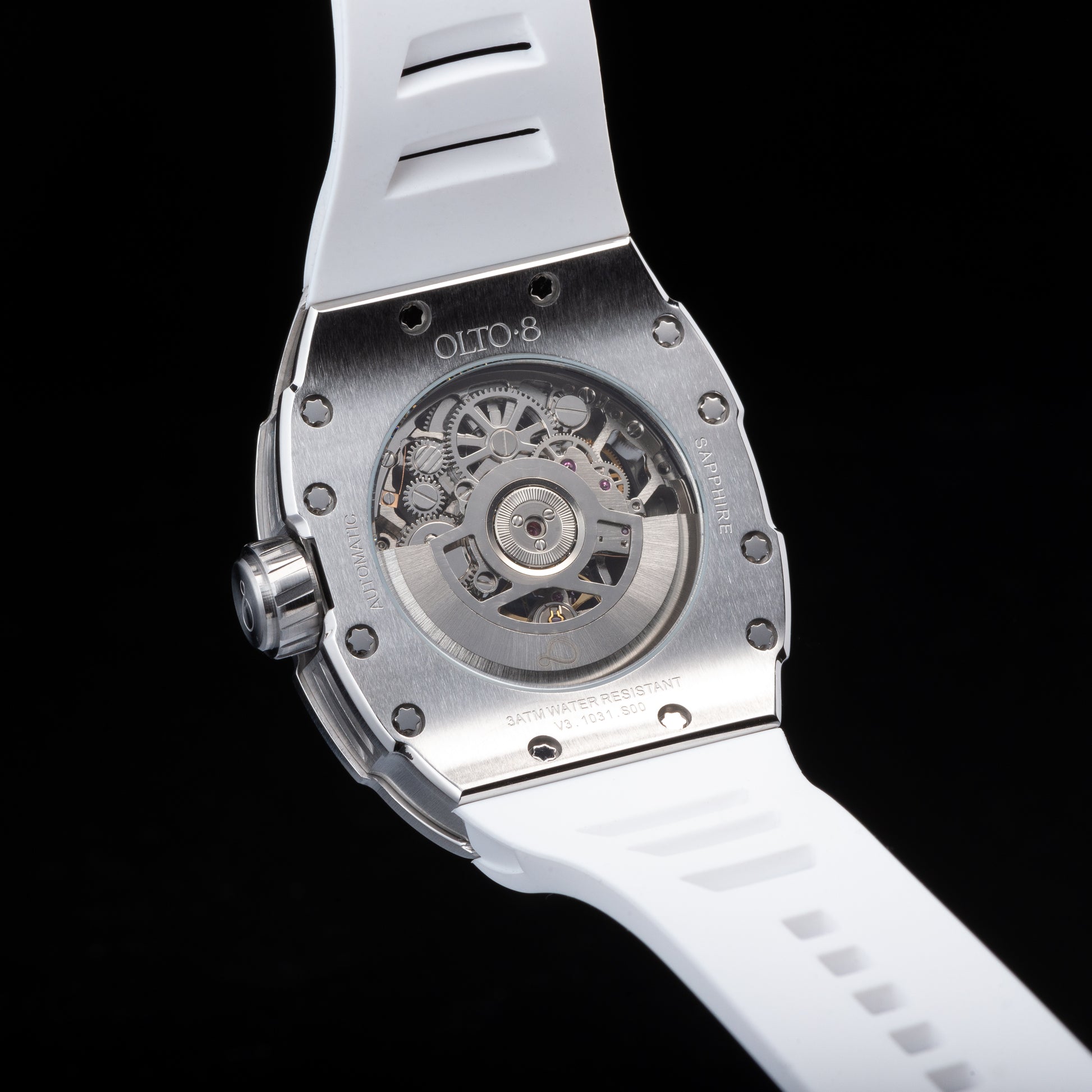 Your OLTO-8 SHOT Skeleton Automatic Watch White watch comes with five years of guaranteed protection: